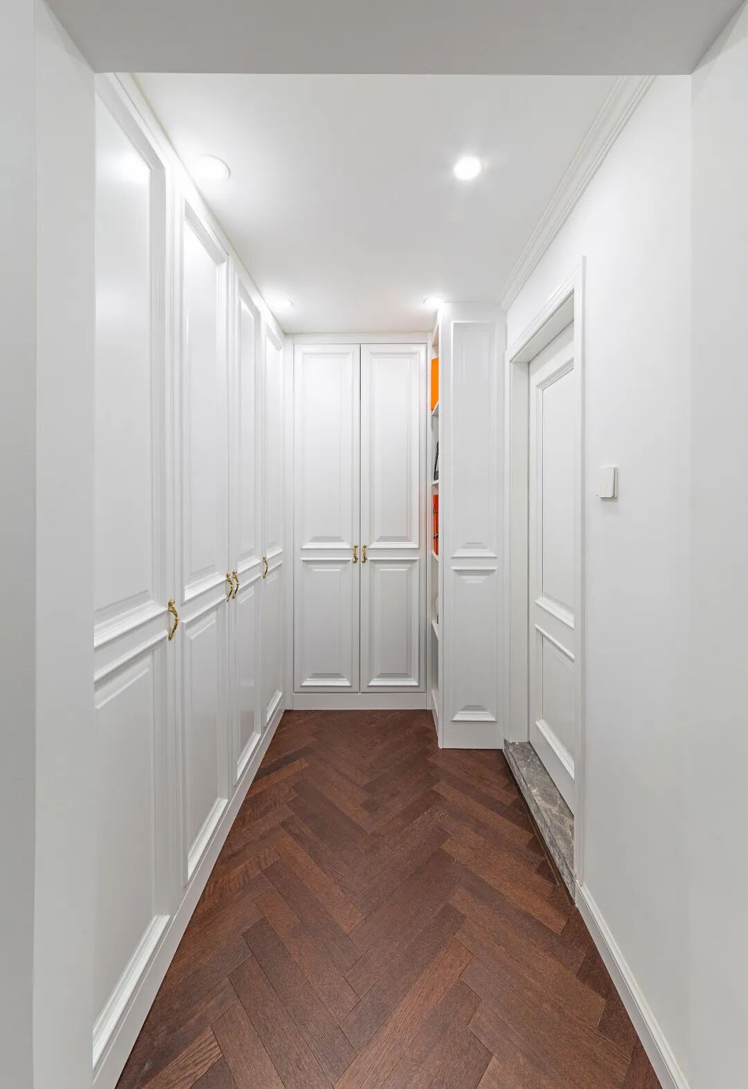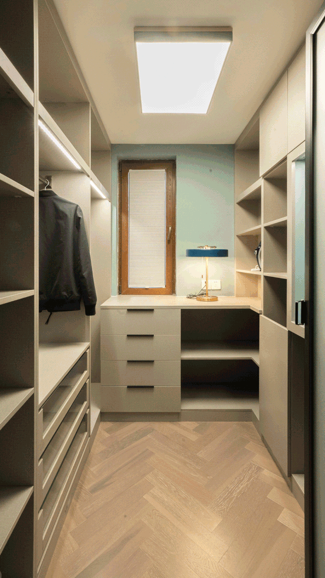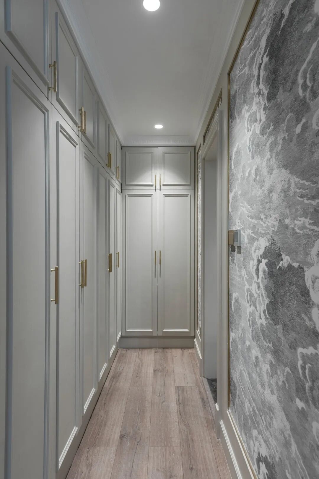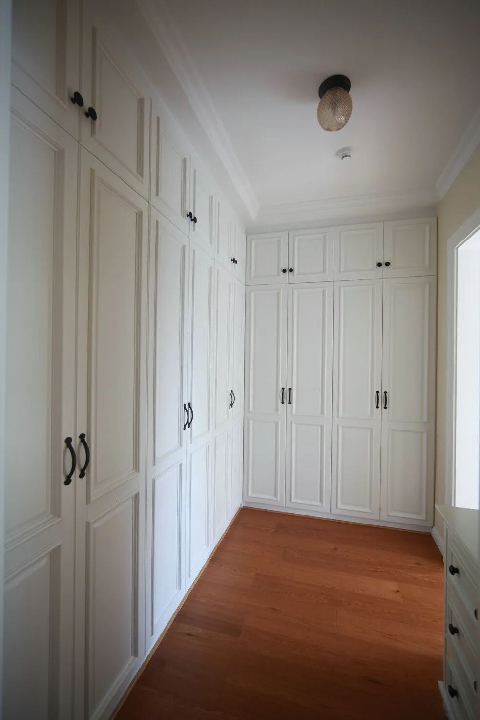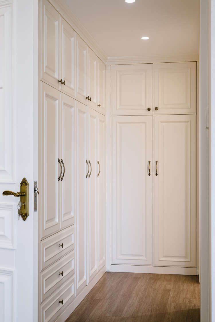 衣帽间作为家里一个较为私密的空间,如果这边本身就是封闭的空间,那么衣帽间里的柜子就可以装成开放式的,这样主人进去找衣物的时候,就可以做到一目了然,不需要每个柜子都去分别开门。
