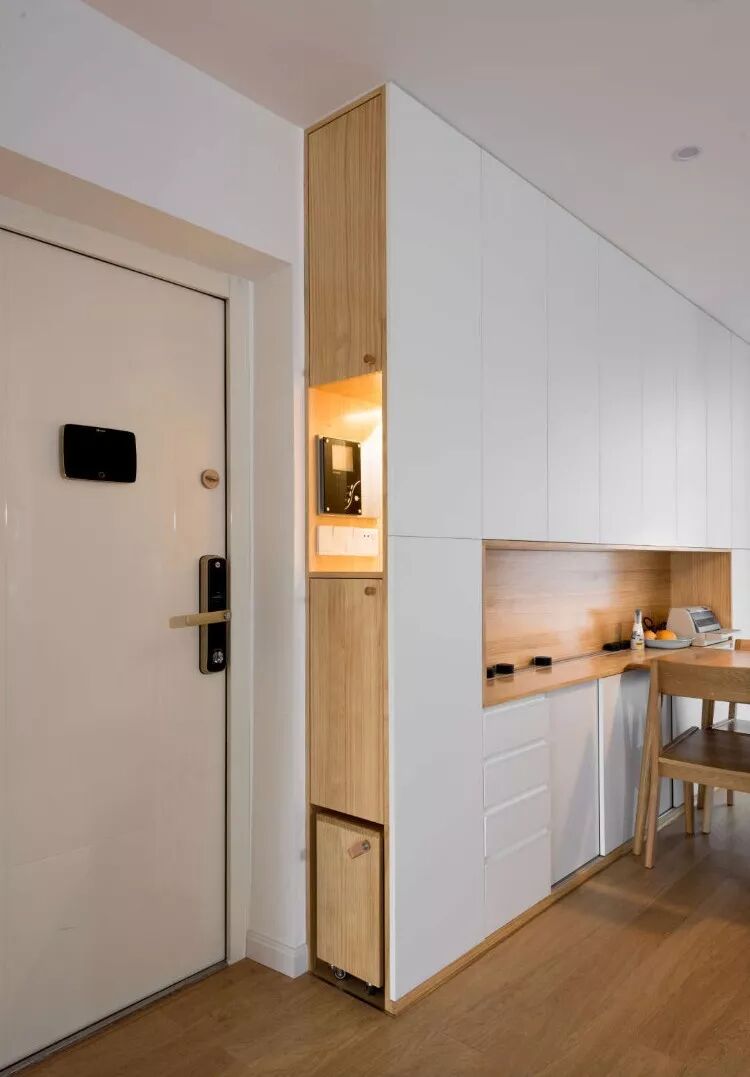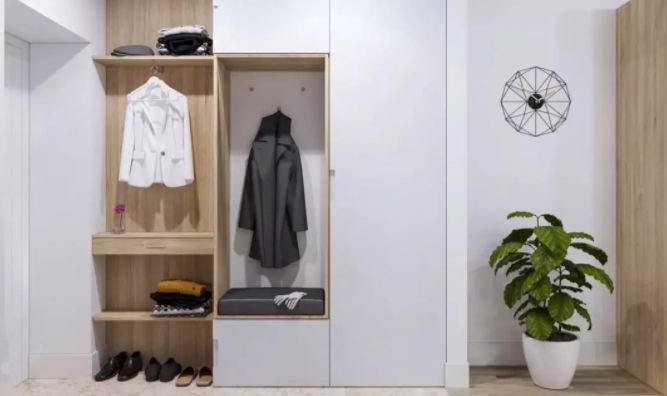 还可以在侧面做定制鞋柜,这样也能腾出一个走廊位置,给鞋有个交代。