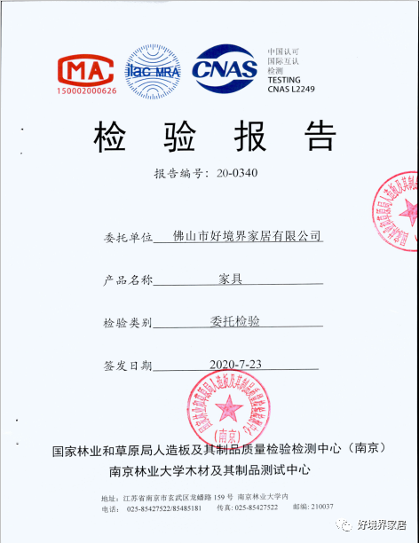 佛山市好境界家居有限公司秉承“为更好的家居环境提供健康、安全的产品和服务”,追求家具板材的环保、健康、安全是一贯宗旨,公司从2012年开始全部使用大亚E0级实木颗粒板,从2018年开始公司研发部就对国内的万华禾香板、水性科天无醛板进行测试、确保板材的稳定性和环保达标情况,并积极推动大亚人造板集团无醛板的研发,在此过程中公司研发部门和广西林业集团下属某大型板材生产厂紧密合作,通过美国合作企业HUGEJOY.INT提供的技术支持和板材检验,终于推出具有企业特色的无醛添加“境醛”板上市。