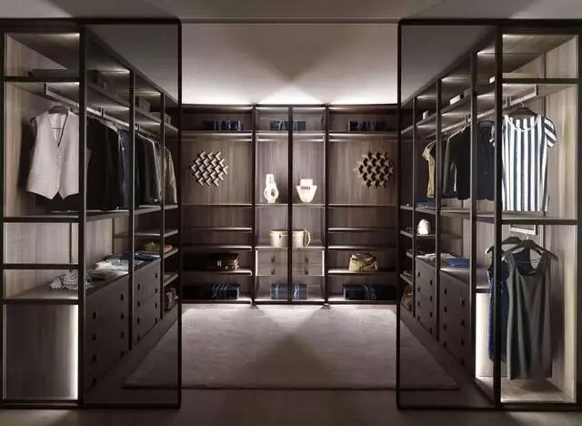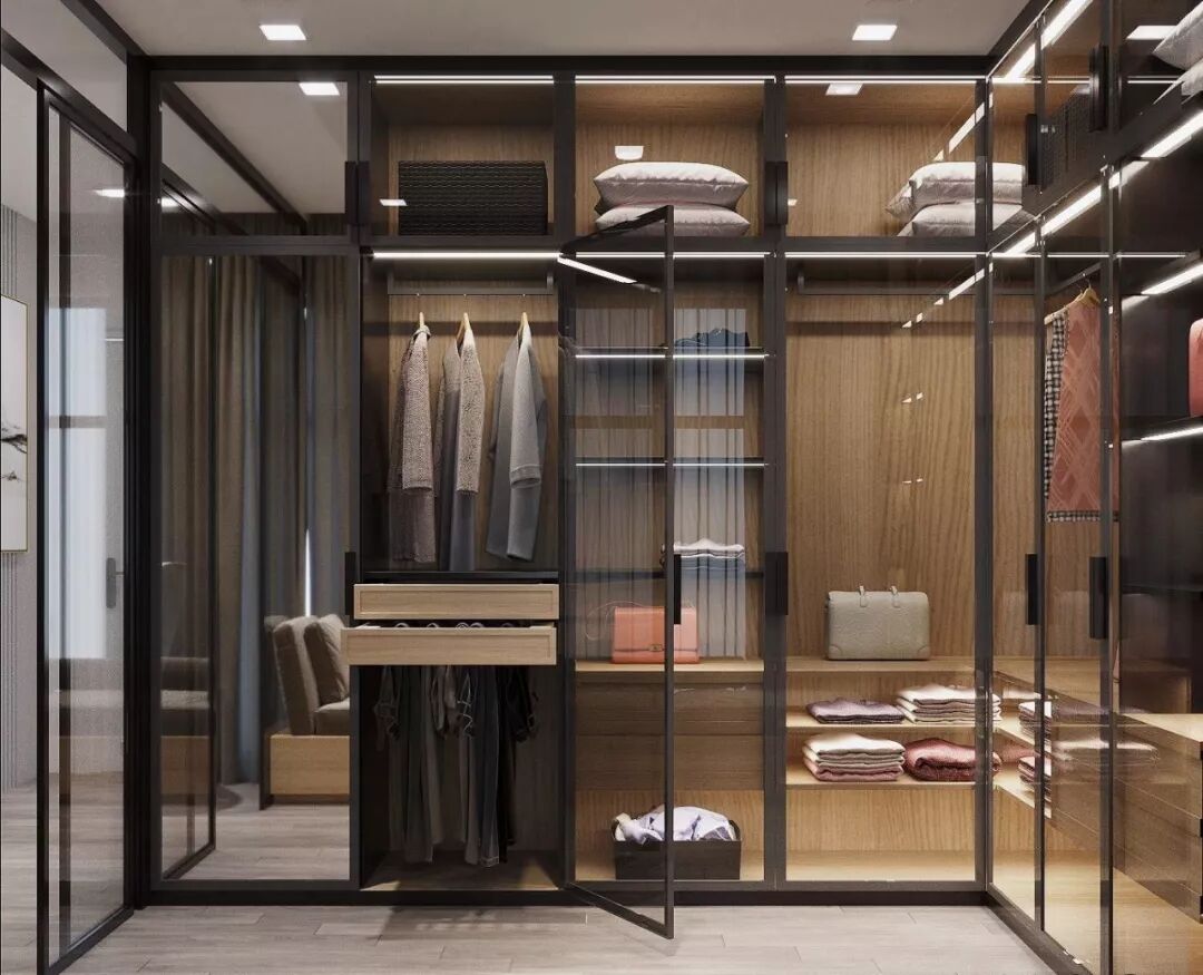 玻璃衣柜可以将密闭的空间打通,令所有衣物都明朗地呈现在眼前,减少了盲目翻找的不便,让衣物的储藏从杂乱无章变得井井有条。