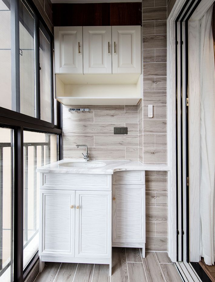 3、 阳台柜的台面最好是选石材的,比如石英石,这种台面会比较好清洁,日晒雨淋都不怕,比较耐用。